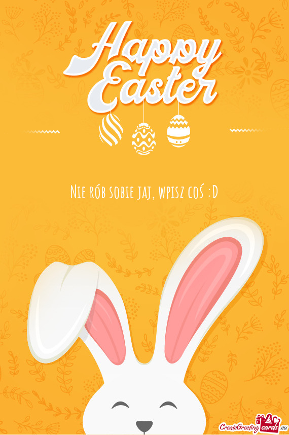 Składam najserdeczniejsze życzenia zdrowia, radości, smacznego jajka, mokrego dyngusa, mnóstwo wWesołego zajączka, spokoju ducha i czasu spędzonego w rodzinnym gronieSkładamy najserdeczniejsze życzenia zdrowia, radości, smacznego jajka, mokrego dyngusa, mnóstwoWesołego zajączka, spokoju ducha i czasu spędzonego w rodzinnym gronie. Wesołych Świąt