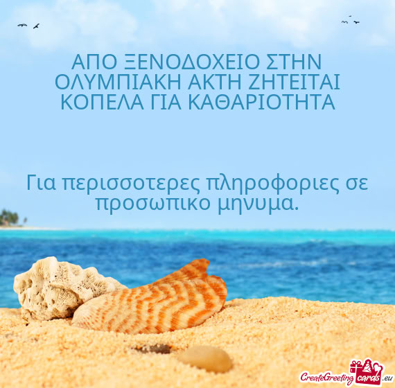 Ζητειται κοπελα για καθαριοτητα απο ξενοδοχειο στην ΟΖητειται κοπελα για καθαριοτητα απο το ξενοδοχειο BLUE DRΑΠΟ ΤΟ ΞΕΝΟΔΟΧΕΙΟ ``ΒLUE DREAM`` ΣΤΗΝ ΟΛΥΜΠΙΑΚΗ ΑΚΤΗ ΖΗΤΕΙΤΑZΖητειται καθαριστρια για το ξενοδοχειο Βlue Dream στην Ολυ