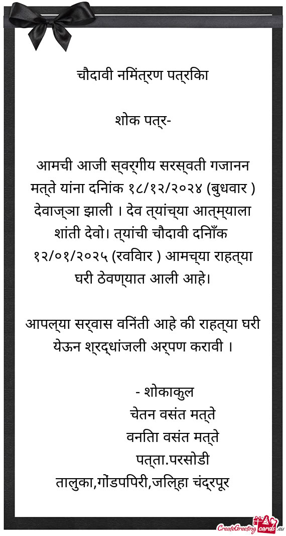??ेरहवीं संस्कार सूचना निमंत्रण सन्दे