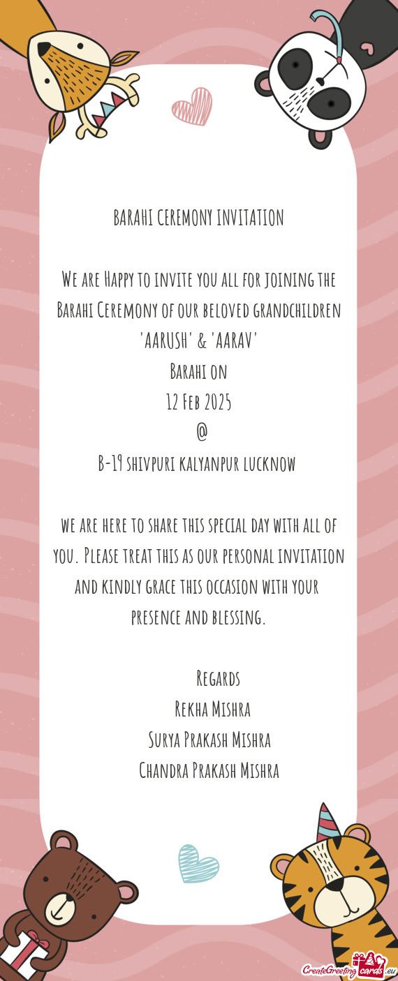 Please treat this as our personal invitation and kindly grace this occasion with your presence and shower your blessings.