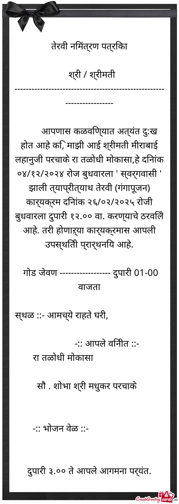 तेरवी निमंत्रण पत्रिका