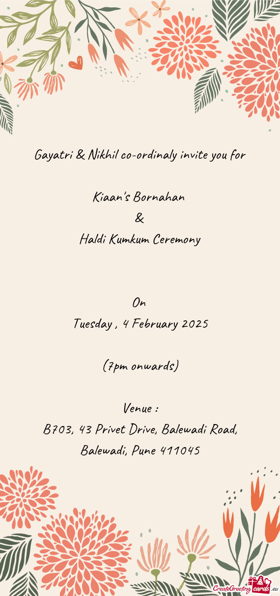 कृपया अपनी उपस्थिति में इस अवसर की शोभा बढ़ाएं एवं आशीर्वाद दे