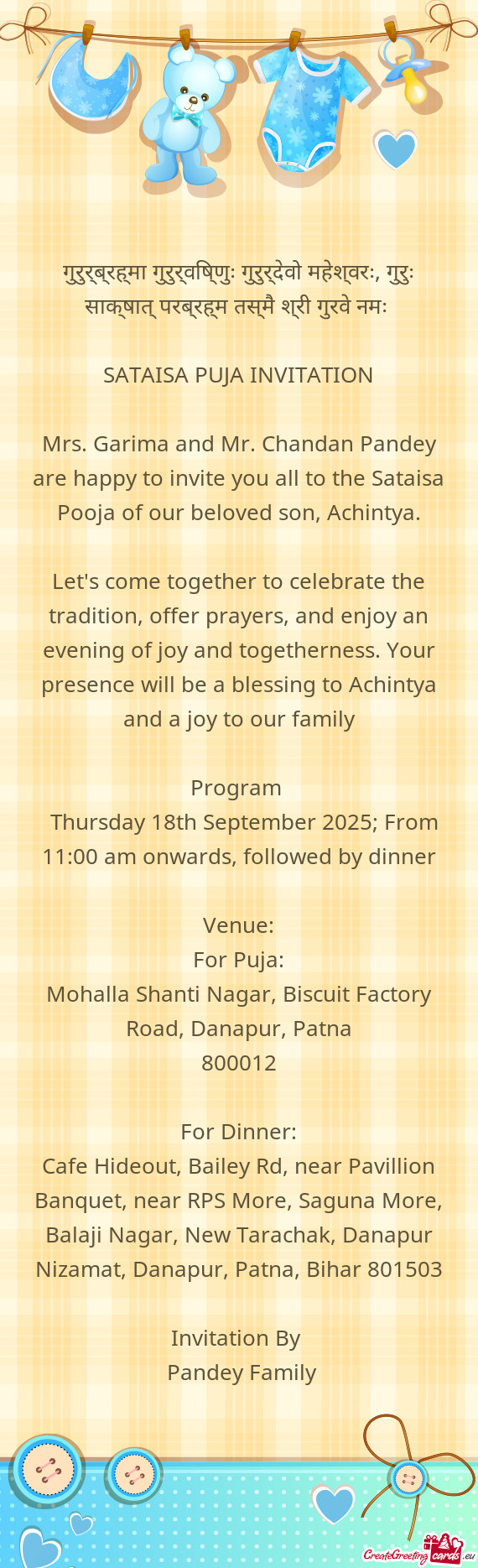 Please treat this as our personal invitation and kindly grace this occassion with your presence and blessing.