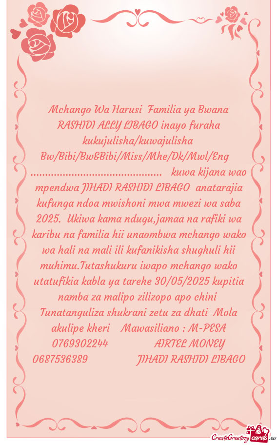 Please accept this message invitation as a personal request for your gracious presence on this auspicious occasion.