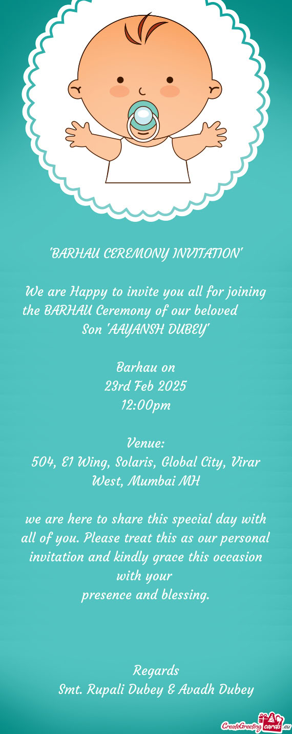 We are Happy to invite you all for joining the Chatti puja of our beloved baby boy