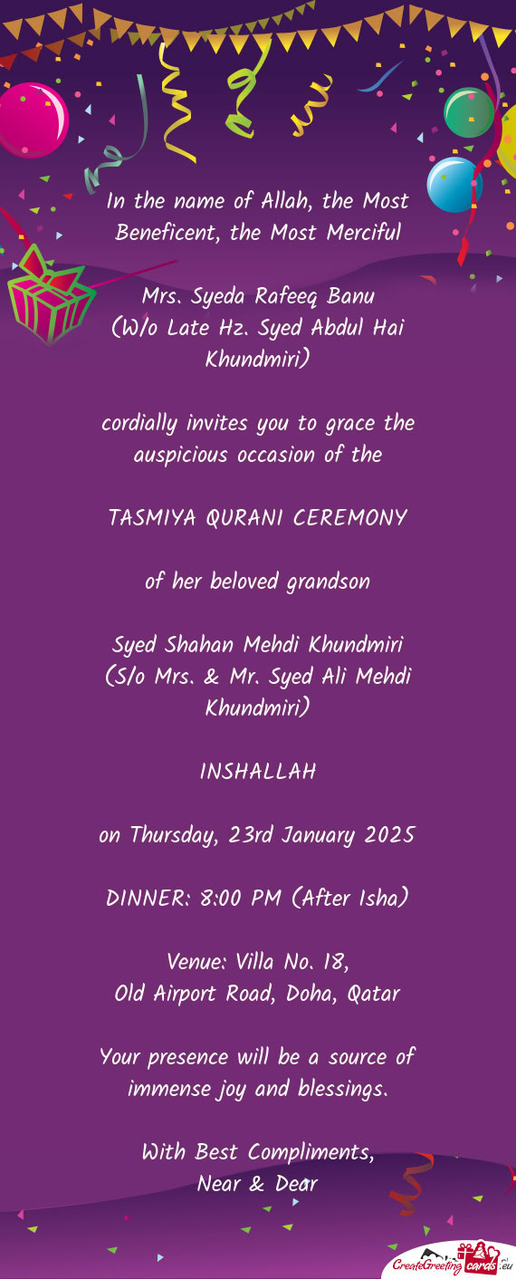 Happy birthday, dear friend! As you celebrate your birthday, may Allah fill your life with peace, love, and prosperity. May the joy and blessings of this day be with you always....from "H"