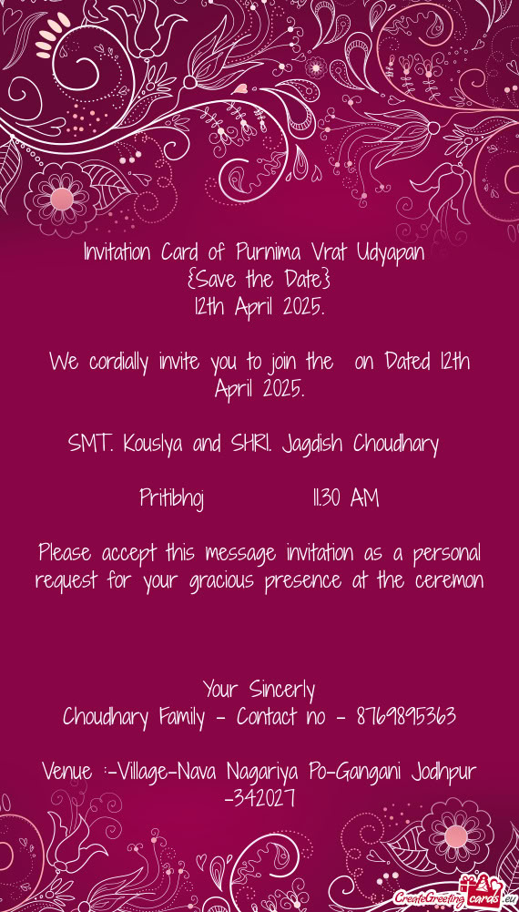Please accept this message invitation as a personal request for your gracious presence at the ceremony