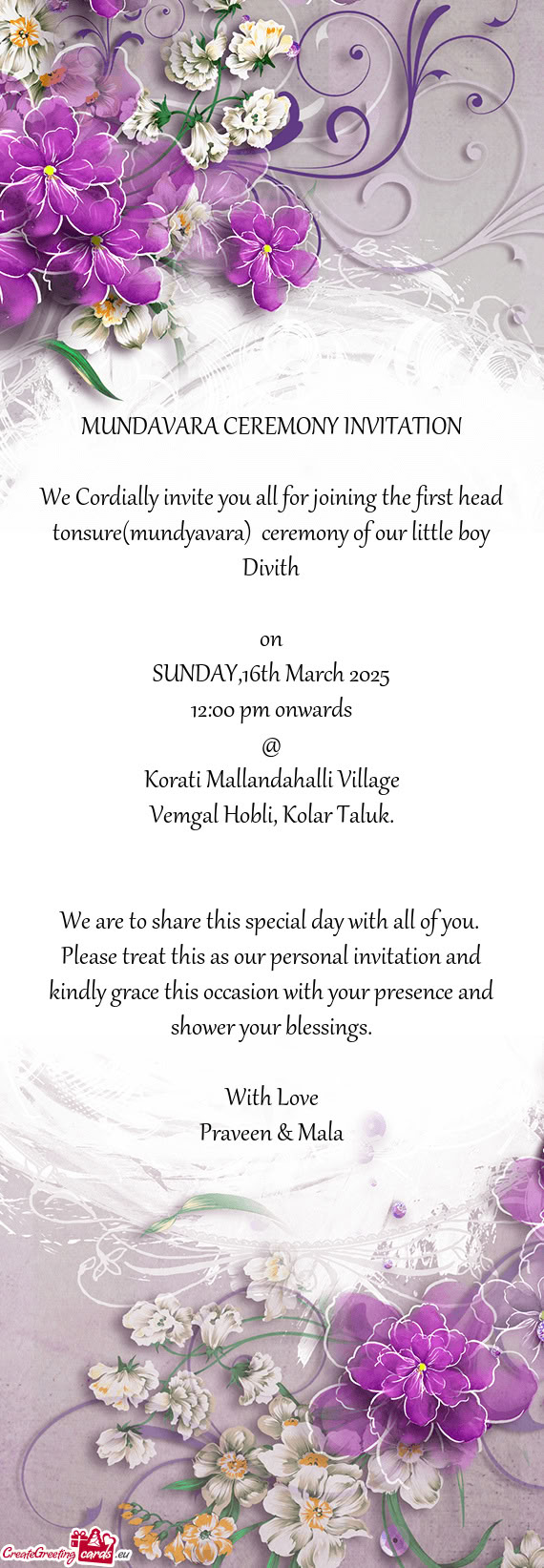 Please treat this as our personal invitation and kindly grace this occasion with your presence and blessing.