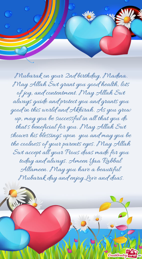 La aniversarea ta îţi doresc ca sănătatea să fie tot timpul împreună cu tine, fericirea să te însoţească la fiecare pas, dragostea să-ţi fie nrcontenit la îndemână, iar norocul să te aştepte la fiecare colţ. La Mulţi Ani, Maira!