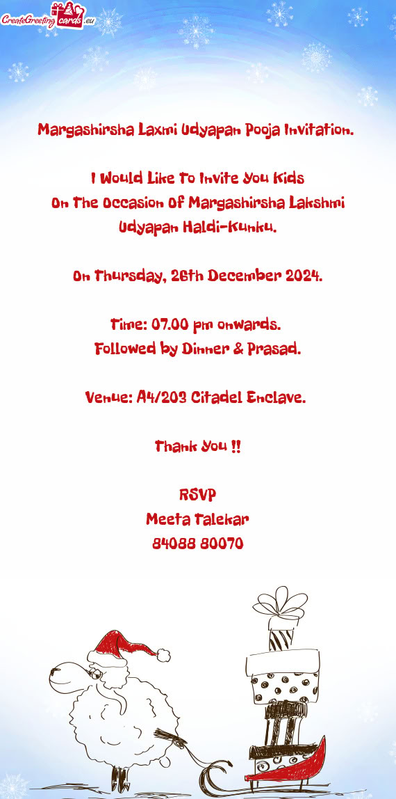 Margashirsha Laxmi Udyapan Pooja Invitation.