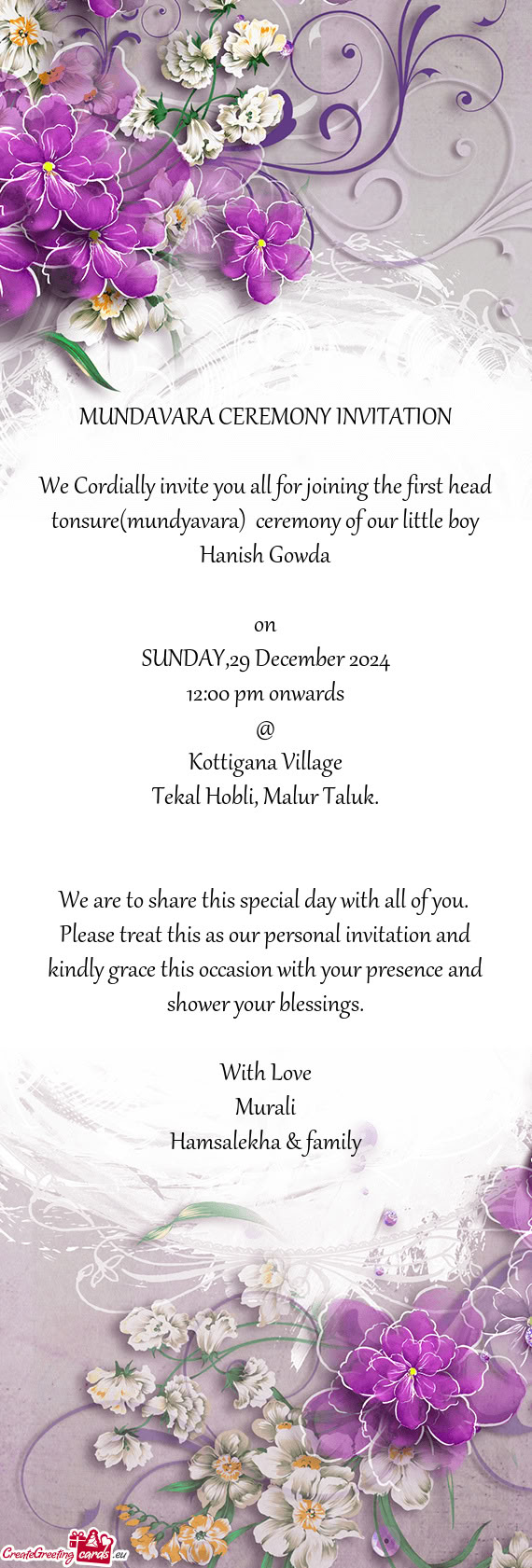 Please treat this as my personal invitation and kindly grace this occasion with your presence and blessing.