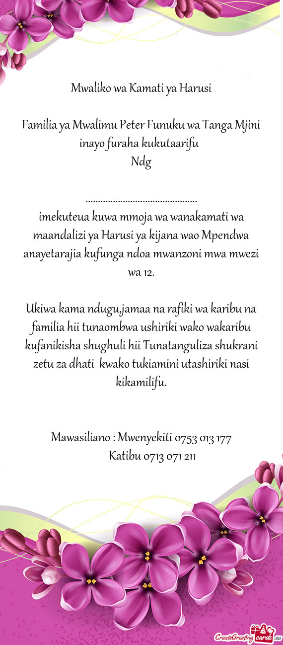 We cordially invites you to join the occasion of Puberty Ceremony of our daughter