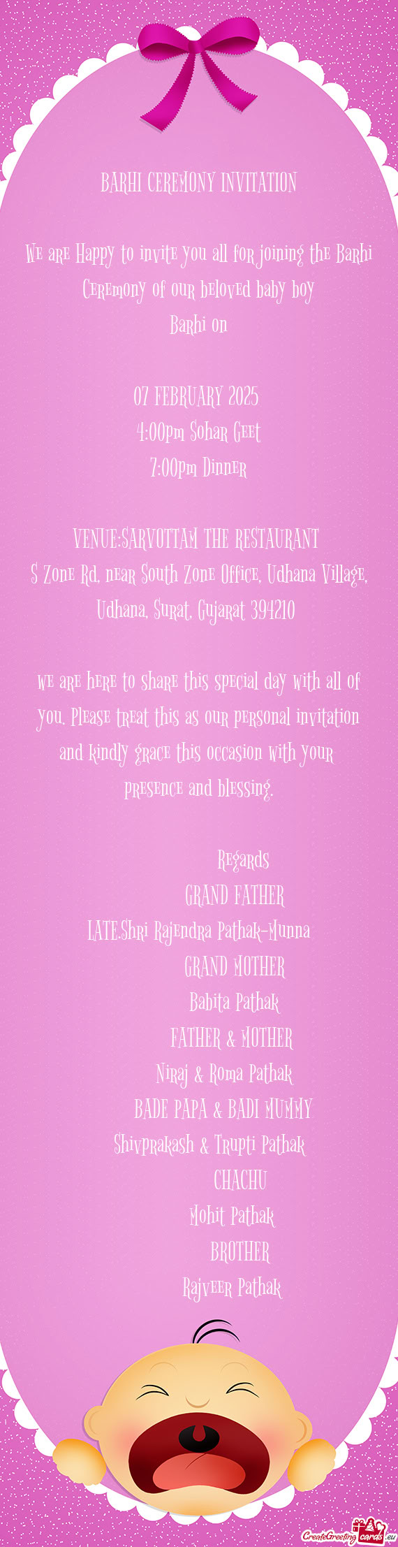 We are happy to invite you all for the Naming & Cradle Ceremony of our little Prince