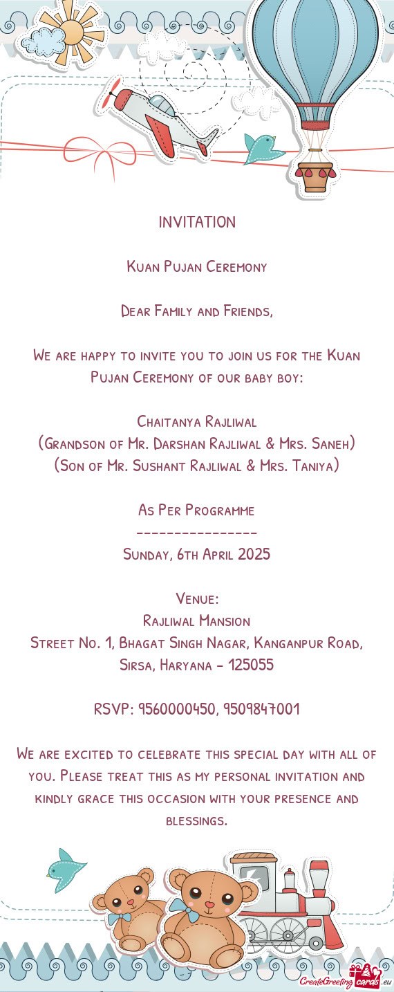 Please treat this as our personal invitation and kindly grace this occasion with your presence and shower your blessings.